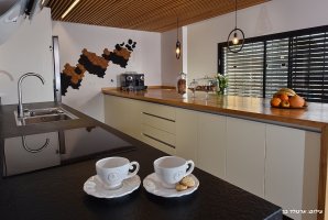 אורחי המלון מוזמנים לבשל את הארוחות שלהם בעצמם ב-2 מטבחים מאובזרים עם מקרר גדול, כיריים חשמליות, תנור אפייה, מדיח, מיקרוגל, קומקום, מכונת אספרסו, כלים שימושיים כולל סכו"ם. פינת האוכל של המלון מתאימה ל-24 סועדים.