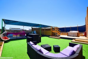 סלון גדול משמש מתחם אירוח ראשי. יש בסלון עמדת די ג'יי, עמדת בר גדולה, מערכת קריוקי, פינת ישיבה מרווחת ונוחה, שולחן אוכל. יש במתחם הפנימי גם חדר שינה זוגי נוח בו ניתן ללון.