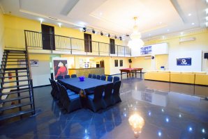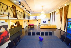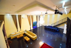 200 מטר של מתחם אירוע ממתינים לכם עם רחבת ריקודים, מערכת שמע איכותית, שולחן סנוקר, תאורה, סלון גדול עם מסך ענק ומקרן, שולחן אבירים שמשמש גם פינת אוכל, מטבח מאובזר עם עמדת בר, מיקרוגל, בר מים ועוד.