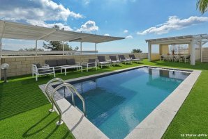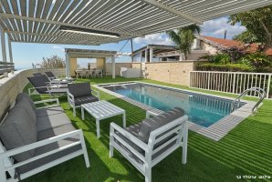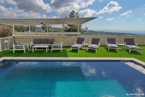 הנופים הקסומים של הגליל המערבי מקיפים את האחוזה ויוצרים אווירה פסטורלית שקטה, חצר הנופש מוקפת עצים וצמחייה טבעית רעננה. השמיים הכחולים משתקפים במים הצלולים של הבריכה, יחד עם ריהוט גן יוקרתי נוח ומיטות שיזוף מצאתם לעצמכם גן עדן קטן. מדשאה סינטטית ירוקה מכסה את רצפת החצר ויוצרת אווירה מטופחת טבעית, ההשקעה שלנו בטיפוח החצר ניכרת בהנאה שלכם.
