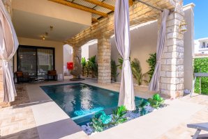 במתחם החיצוני תמצאו בריכת שחייה פרטית, מחוממת ומקורה, לצד פינות ישיבה מפנקות, ערסל ומיטות שיזוף. לרשותכם גם עמדת מנגל BBQ מושלמת לערבי חברה מהנים. בתוך הסוויטות ממתין לכם אבזור מודרני הכולל מסכי LCD עם חיבור ל-YES ושירותי סטרימינג כמו Netflix, כך שתוכלו להירגע בנוחות מקסימלית.