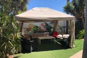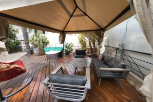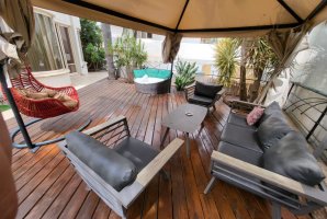 באזור החיצוני של הסוויטה תמצאו מתקני חצר לילדים, פינג פונג, וכדורגל שולחן. פינות ישיבה וריהוט גן חיצוני מחכים לכם לשעות של הנאה תחת השמיים הפתוחים.