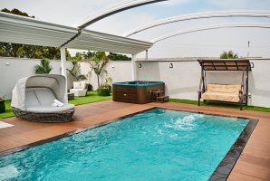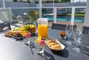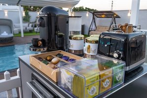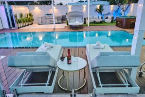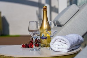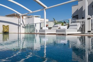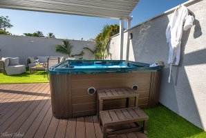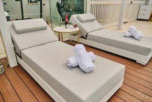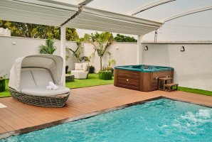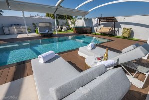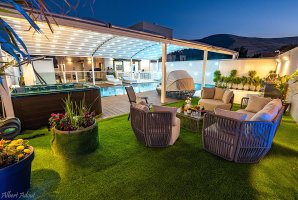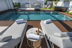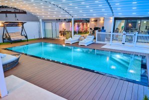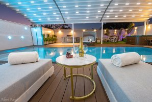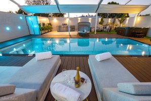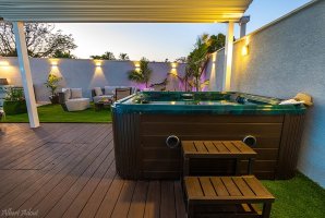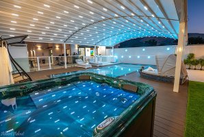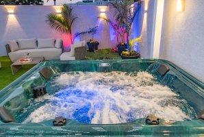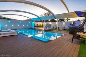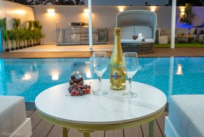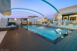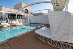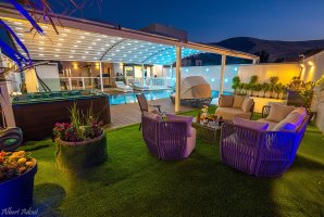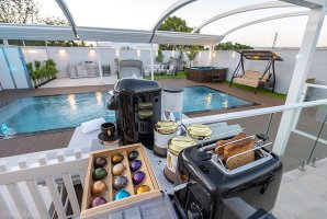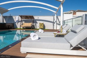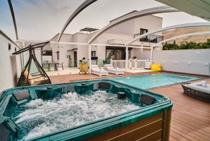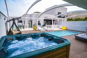 אירוח יוקרתי ומפנק בסוויטה עם חצר נופש בה תמצאו בריכה פרטית מחוממת ומקורה בהתאם לעונה (הבריכה מגודרת), ג'קוזי זרמים יוקרתי, פינות ישיבה ושיזוף, עמדת מנגל עם מטבח חיצוני, שולחן פינג פונג, מתקני חצר לילדים.