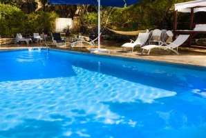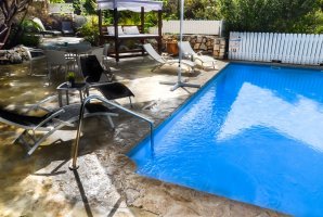 שתי הסוויטות חולקות בריכת שחייה יפה, מיטות שיזוף, פינות ישיבה.