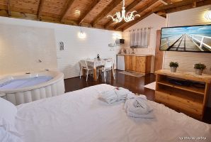 בתוך היחידה תמצאו מיטה זוגית נוחה עם מצעים איכותיים, ג'קוזי זוגי עגול, מטבחון מאובזר עם מכונת אספרסו, פינת אוכל קטנה, מרפסת פרטית, מסך גדול עם מבחר ערוצים מול המיטה, מיזוג אוויר.