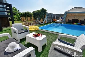 גינה מטופחת ומושקעת מקיפה את המתחם כולו עם מדשאה, פינות ישיבה, עמדת מנגל, תאורת גן ובעיקר, בריכה פרטית מרעננת ומגודרת.