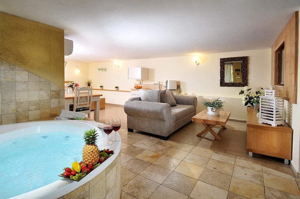 אורחי האחוזה מוזמנים להתפנק בכל סוויטה עם ג'קוזי זוגי, מיטה זוגית, מיזוג אוויר, פינת ישיבה ופינת אוכל. מטבחון מאובזר יאפשר לכם הכנה של כל סוגי הארוחות עם כיריים חשמליות, מקרר גדול, פינת קפה, כלים שימושיים. חובבי סרטים וסדרות טלוויזיה ישמחו לגלות מסך פלזמה 42 אינטש וממיר הוט.