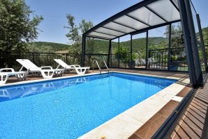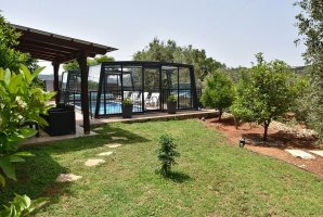את המתחם מקיפה חצר נופש רומנטית ומפנקת עם בריכה פרטית המשקיפה על הנוף, פינות ישיבה, תאורה רומנטית, עמדת מנגל, גינת תבלינים, עצי פרי.