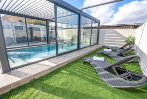 המתחם החיצוני של הסוויטה כולל בריכת שחייה פרטית מגודרת ומחוממת, יחד עם ריהוט גן חיצוני, פינות ישיבה ומיטות שיזוף להנאתכם המרבית. עמדת מנגל BBQ זמינה לשימוש, למעט בשבת, מה שהופך את שהייתכם לנעימה ומותאמת לצרכים האישיים שלכם.