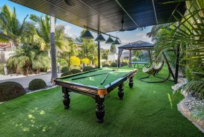 במתחם החיצוני תמצאו שולחן סנוקר חיצוני, שולחן פינג פונג, פינות ישיבה נוחות ומיטות שיזוף לצד ריהוט גן יוקרתי. בנוסף, עמדת מנגל BBQ זמינה (לא בשבת) כדי להעשיר את החוויה הקולינרית שלכם.