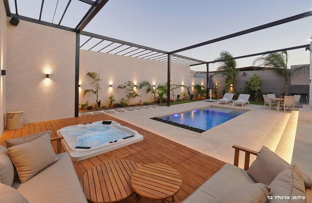 הסוויטה מעוצבת עם דגש על יוקרה ונוחות, ומציעה גישה לאינטרנט אלחוטי WIFI, מסך LCD עם Netflix, ושולחן אוכל מרווח. בחוץ תמצאו בריכת שחייה פרטית מחוממת ומגודרת, יחד עם ג'קוזי ספא לשעות של רוגע. המטבח החיצוני המאובזר כולל עמדת מנגל BBQ (לא בשבת), מושלם לאירוח אינטימי תחת כיפת השמיים.