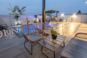 הסוויטה כוללת בריכת שחייה פרטית מחוממת, מגודרת ומקורה, לצד ג'קוזי ספא מפנק. במתחם החיצוני תמצאו שולחן גינה, פינות ישיבה וריהוט גן חיצוני, המאפשרים לכם ליהנות מהאוויר הצח והנוף המרהיב. בנוסף, ישנה עמדת מנגל BBQ (לא בשבת) למי שמעוניין לבשל בחוץ.