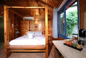 הלינה היא במיטה זוגית נוחה עם מצעים איכותיים. הסוויטות בנויות עץ מלא שיוצר אווירה רומנטית כפרית. להנאתכם בסוויטות אמבט ספא זוגי, מסך שטוח וערוצים של יס. ניתן לבשל ארוחות קלות במטבחון מאובזר.