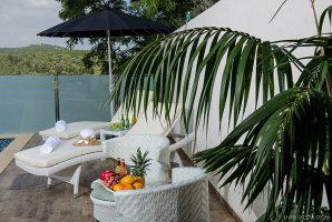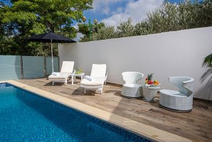 בחצר הנופש הצמודה אל הסוויטה בריכה פרטית מגודרת, מחוממת ומקורה. לצד הבריכה ג'קוזי ספא עם זרמים. יש בחצר גם ערסל, מיטות שיזוף, פינת ישיבה, עמדת מנגל. החצר כוללת את כל מה שצריך בשביל להנות בנוחות מהאוויר הצח של הגליל.