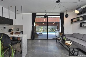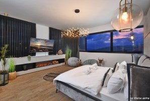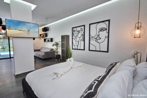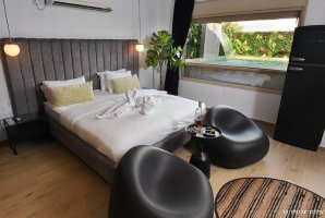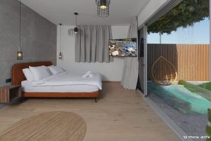 הסוויטה מעוצבת ומרוהטת בסגנון יוקרתי עם מסך גדול, פינת ישיבה, מטבחון, פינת אוכל, חדר רחצה ואמבט ספא. הלינה במיטה זוגית נוחה עם כלי מיטה איכותיים. מיד בכניסה אל הסוויטה תדעו שבחרתם נכון.