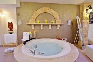 חלל אחד מרכיב את הסוויטה. הריהוט משלב בין הצבע הלבן ובין שימוש באבן על מנת לייצור אווירה קלאסית יוקרתית. אמבט ג'קוזי עגול ממוקם במרכז הסוויטה. חובבי צפייה בטלוויזיה ובסרטים ישמחו למצוא פינת ישיבה נוחה, מסך טלוויזיה, מבחר ערוצים וסרטים, קמין ומיזוג אוויר.