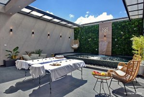 המתחם כולל סוויטה אחת בלבד כך שאתם נהנים מפרטיות מלאה. החצר של הסוויטה ממתינה לכם עם בריכה, פינת ישיבה, מיטות שיזוף, מטבח חיצוני. מגיעים לסוויטה עם ילדים? הוספנו בעבורם טרמפולינה.