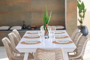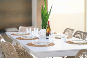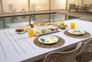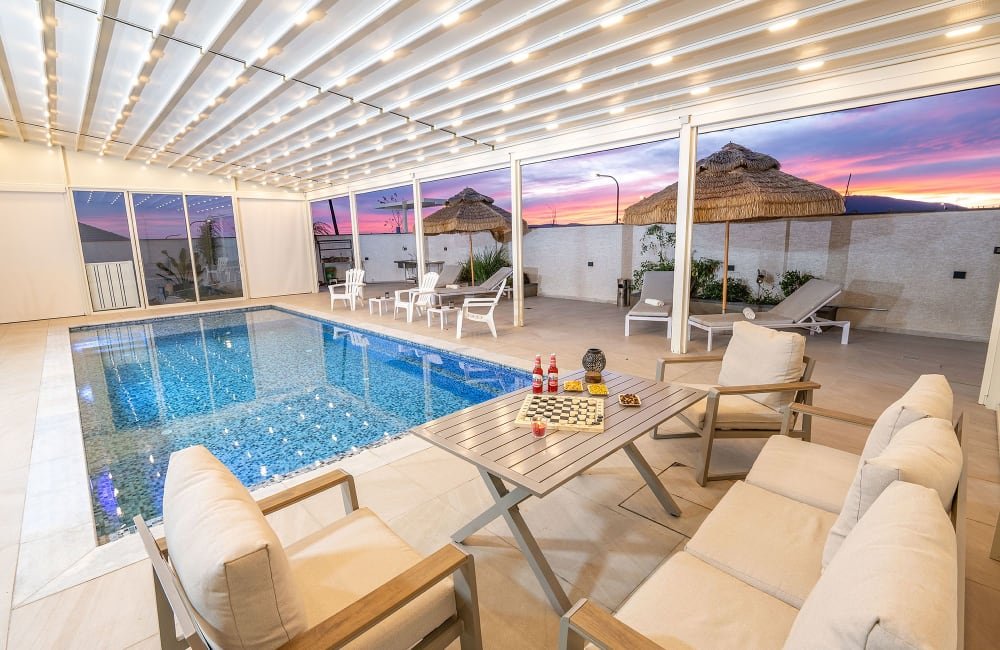 החצר החיצונית מצוידת בבריכת שחייה פרטית מחוממת ומגודרת, המאפשרת לכם להירגע ולהתפנק בכל עונות השנה. בנוסף, תמצאו שם גם פינות ישיבה נוחות, מיטות שיזוף ועמדת מנגל BBQ לארוחות תחת כיפת השמיים.