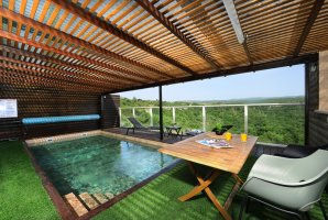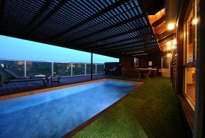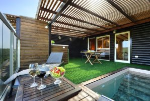 במתחם שלנו תיהנו מבריכת שחייה פרטית ומחוממת עם קירוי, להנאה מושלמת בכל עונות השנה. המתחם החיצוני מצויד בריהוט גן חיצוני, פינות ישיבה נוחות ושולחן גינה מרווח. תוכלו גם ליהנות מעמדת מנגל BBQ לחוויית בישול תחת כיפת השמיים.