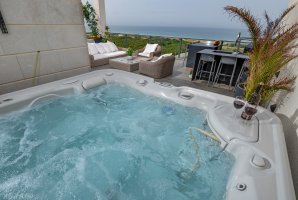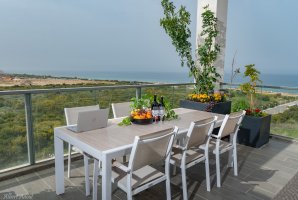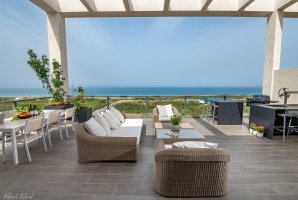 דירת נופש יוקרתית ומודרנית אל מול חופי אכזיב. רמה גבוהה של אירוח עם 3 חדרי רחצה, סאונה, מרפסת גדולה עם פינת ישיבה רכה כמו ענן וג'קוזי מרובע.