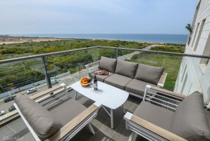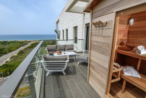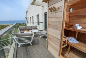 האטרקציה המרכזית היא מרפסת נוף גדולה עם פינת ישיבה וג'קוזי מול הים. במתחם החיצוני גם מיטות שיזוף, פינת ישיבה, מטבח חיצוני, עמדת ברביקיו ונוף מרהיב. רשימת הפינוקים של הדירה כוללת גם סאונה יבשה.