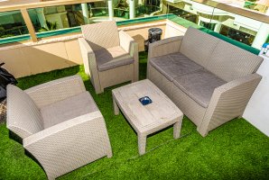 בריכה גדולה עומדת לרשות דיירי המתחם. לצד הבריכה מיטות שיזוף ופינות ישיבה, אתם מוזמנים ליהנות מהבריכה. אל הדירה צמודה מרפסת עם פינת ישיבה. המרפסת משקיפה על הבריכה.