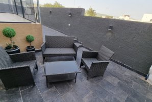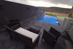את הדירה מקיפה חצר נופש מטופחת עם בריכה פרטית מגודרת, מחוממת ומקורה בהתאם לעונה. פינת ישיבה תשמש לארוחת בוקר או כוס קפה בגינה. הילדים ייהנו מטרמפולינה ומתקני חצר. אוהבים ספורט? במיוחד בשבילכם הוספנו גם שולחן פינג פונג. מעדיפים לנוח מפעילות בחופשה הזאת? יש בחצר ערסל.