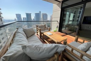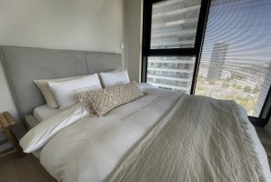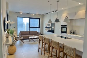 דירת נופש יוקרתית ומפוארת במיקום מבוקש בעיר תל אביב. הדירה מעוצבת בסגנון יוקרתי, משקיפה על העיר, מציעה בריכה במתחם ומתחייבת לרמה גבוהה של אירוח. עיצוב בסגנון נורדי עם גוונים בהירים ונגיעות מעולם הטבע משרה אווירה של רוגע, שלווה וחופשה.