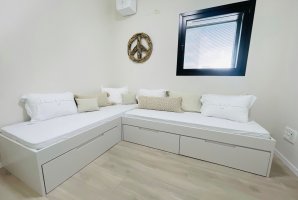הסלון של דירת נופש רום 26 מעוצב עם פינת ישיבה נוחה ומסך שטוח חכם עם כל ערוצי הלוויין בתוספת מנוי נטפליקס. חובבי סרטים ייהנו ממערכת קולנוע ביתית. יש אינטרנט אלחוטי חינם בדירה. במרפסת השמש פינת ישיבה אינדונזית רכה ומפנקת. המרפסת משקיפה על נוף אורבני מרהיב עוצר נשימה. הדירה כוללת 2 חדרי שינה וחדר רחצה אחד. עד 4 איש ללינה בדירה. בתיאום מראש תקבלו גם ארוחות שף אל הדירה (כרוך בתשלום נוסף).