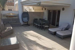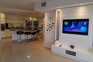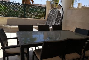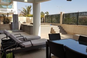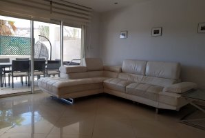 סלון מפנק ויוקרתי ממתין לכם עם פינת ישיבה מפוארת. אל הדירה צמודה מרפסת נוף עם פינות ישיבה נוחות. המרפסת משקיפה על מתחם הבריכה של קומפלקס הדירות. יש במתחם לובי מפואר עם פינות ישיבה.