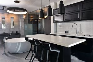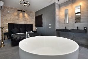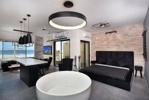 לינה ב-2 חדרי שינה זוגיים עם מיטה זוגית נוחה, מצעים איכותיים וכלי מיטה רכים. אמבט זוגי עגול מפנק ממוקם לצד המיטה הזוגית. שילוב נכון בין הצבע השחור לצבע הלבן מעניק לדירת הנופש מראה יוקרתי מיוחד.