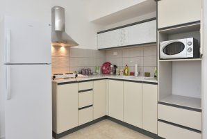 מטבח מאובזר מאפשר בישול ארוחות מלאות עם מקרר גדול, כיריים, קולט אדים, קומקום חשמלי, כלים שימושיים ועוד.