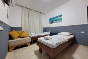 הלינה היא ב-2 חדרי שינה כאשר אחד החדרים כולל מיטה זוגית וחדר נוסף כולל 2 מיטות יחיד. בשני החדרים מסך טלוויזיה מול המיטה, שידות אחסון, מיזוג אוויר, חלון ואווירה נעימה. החדר עם מיטות היחיד יוכל להתאים לשני מבוגרים או לילדים.