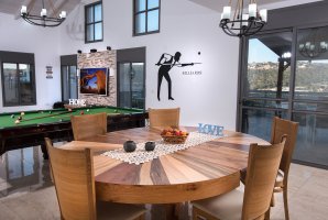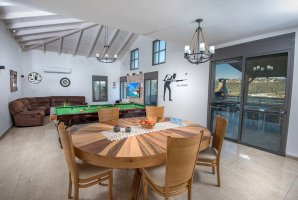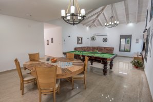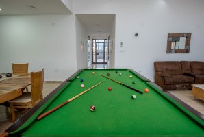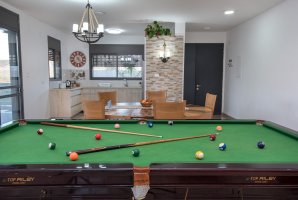 אוהבים סנוקר? גם אנחנו באחוזת אגם בוטיק אוהבים מאוד סנוקר ולכן בחרנו בעבורכם שולחן מקצועי מאובזר. השולחן ממוקם בסלון במתחם ממוזג ונוח. העיצוב היוקרתי של האחוזה בא לידי ביטוי בפינת ישיבה יוקרתית בסלון, מסך גדול, חלונות גדולים מעוצבים וגם פינת אוכל נעימה ומזמינה. המטבח מעוצב בקווים קלאסיים נקיים. קל יהיה להתמצא במטבח ולבשל ארוחות קלות.
