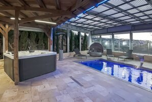 האחוזה כוללת בריכת שחייה פרטית, מקורה ומחוממת, לצד ג'קוזי ספא מפנק. החצר המטופחת מציעה מטבח חיצוני מאובזר, פינות ישיבה נוחות ושולחן סנוקר חיצוני, המבטיחים חוויית נופש יוקרתית וייחודית.