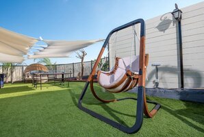 אצלנו בחצר של אחוזת נטלי תפגשו ערסלי כורסה מפנקים ונוחים במיוחד, אל תפספסו! בעבור ילדים הצבנו מתקני משחקים. ישנה פינת אוכל חיצונית גדולה. אם יש לכם שאלות נוספות בנושא אבזור ועיצוב החצר, צרו קשר עם בעלי הווילה ותקבלו מענה מלא.