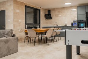 במתחם החיצוני תמצאו בריכת שחייה פרטית, מחוממת מגודרת ומקורה המתאימה לכל ימות השנה. פינות ישיבה מרהיבות, עמדת מנגל BBQ ומיטות שיזוף מקנות תחושת חופש מהפנטת. לאוהבי הספורט, ישנו כדורגל שולחן והוקי אוויר.