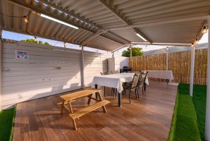האטרקציה המרכזית היא חצר נופש עם בריכה פרטית גדולה, פינות ישיבה מוצלות ושיזוף, נדנדה, טרמפולינה לילדים, שולחן פינג פונג, הצללה, פינת אוכל גדולה, מנגל יוקרתי. חשוב לנו שיהיה לכם נוח אז הוספנו גם מקרר וכיור במתחם החיצוני.