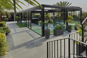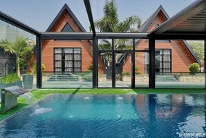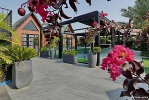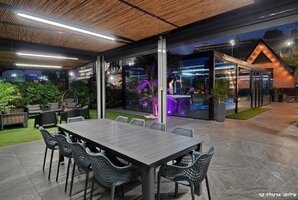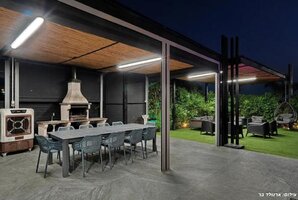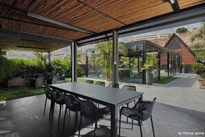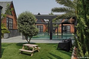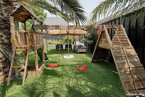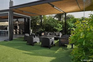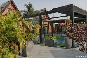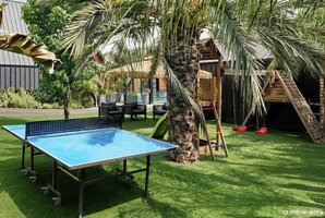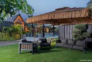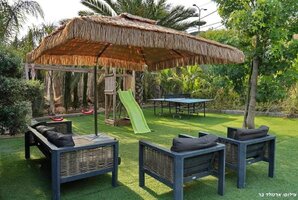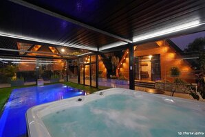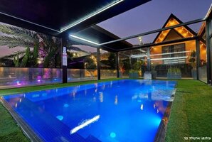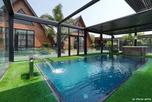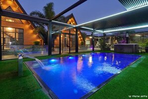 בחוץ, האחוזה מציעה בריכת שחייה פרטית מגודרת, מקורה ומחוממת, ג'קוזי ספא, ומתחם גינה מאובזר עם פינות ישיבה, עמדת מנגל BBQ וטאבון. לילדים ולמבוגרים כאחד, המקום מציע מתקני חצר ושולחן פינג פונג להנאה מקסימלית.