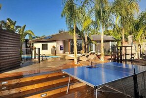 מתחם החוץ המרהיב כולל בריכת שחייה פרטית ומגודרת, ג'קוזי ספא להנאה מושלמת, וכן עמדת מנגל BBQ לחוויית בישול באוויר הפתוח. לאוהבי המשחקים, יש פינג פונג, שולחן סנוקר חיצוני, וכדורגל שולחן להנאת המשפחה והחברים.