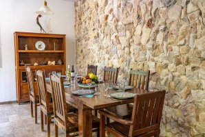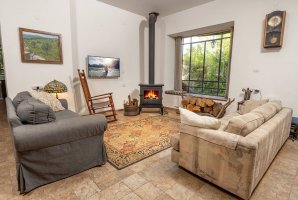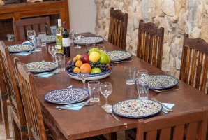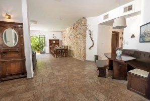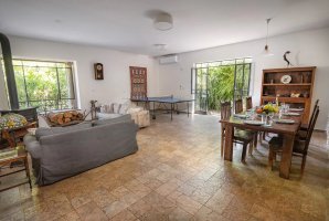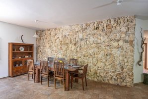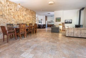 לרשותכם סלון מרווח (כ-65 מ"ר) שבו קמין עצים לחימום ולצפייה באש בחורף, פינת ישיבה נוחה, שולחן אוכל גדול, שולחן פינג פונג איכותי ומסך טלוויזיה.
