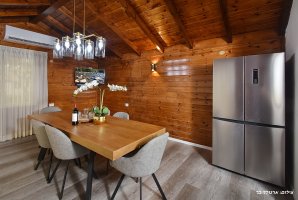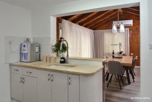כראוי לאחוזת נופש יוקרתית תיהנו מסלון מפנק עם פינת ישיבה נוחה, מסך גדול וערוצים של הוט. המטבח מאובזר בכל מה שצריך להכנת ארוחות בתוספת מכונת אספרסו ותמי 4. הלינה היא ב-3 חדרי שינה שיש בהם הכול.