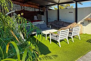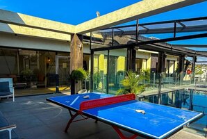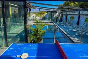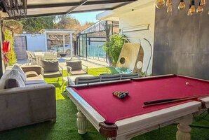 בווילה תמצאו בריכת שחייה פרטית ומגודרת, מחוממת ומקורה, לצד ג'קוזי ספא מפנק. החצר הגדולה כוללת שולחן פינג פונג, שולחן סנוקר חיצוני, עמדת מנגל BBQ, ופינות ישיבה נוחות. המטבח החיצוני מאובזר ומזמין אתכם ליהנות מארוחות תחת כיפת השמיים.