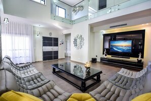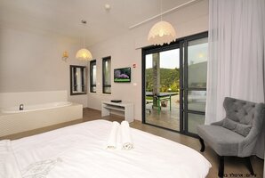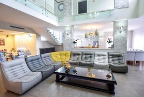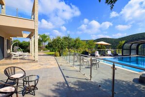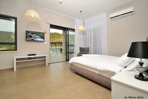 באחוזה תמצאו 8 חדרי שינה מרווחים, מתוכם 7 סוויטות, כל אחת עם חדר רחצה מפואר משלה. להנאתכם, בריכת שחייה פרטית מגודרת, מחוממת ומקורה בחורף, סאונה יבשה וג'קוזי ספא. כל אלה מבטיחים לכם חוויה מפנקת ויוקרתית במתחם.