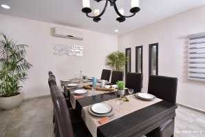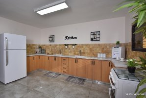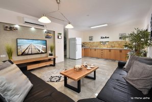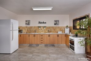 סלון גדול ממתין לכם עם פינת ישיבה נוחה, מסך טלוויזיה עם מבחר ערוצים, עיצוב יוקרתי ופינת מעוצבת לנטילת ידיים. פינת הישיבה מתאימה ל-30 איש. האירוח כולל מטבח מאובזר עם משטחי עבודה גדולים נוחים, כיריים, תנור אפייה עם תא בשרי ותא חלבי, מקרר, מיקרוגל, קומקום חשמלי, כיורים נפרדים, פלטת שבת ומיחם. המטבח כשר למהדרין.