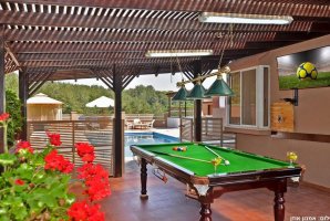 סלון מרווח ויוקרתי עם מסך טלוויזיה גדול, פינת ישיבה נעימה, מבחר ערוצים, אינטרנט אלחוטי חינם. האטרקציה המרכזית היא חצר הנופש המושקעת והמטופחת. אתם מקבלים חצר עם בריכה מחוממת בעונה, ג'קוזי ספא מפנק אל מול הנוף, שולחן סנוקר, שולחן כדורגל, בר ישיבה, גזיבו, עמדת ברביקיו, מיטות שיזוף נוחות ופינות ישיבה מול הנוף. חצר הנופש של וילה הולידיי פול משדרגת כל חופשה משפחתית, זוגית, קבוצתית וגם יום גיבוש או כיף. במתחם מותר להפעיל מוסיקה לא רועשת רק בשעות החוקיות.
