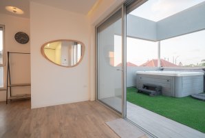 בחצר הוילה תמצאו פינות ישיבה נעימות, ערסלים ומיטות שיזוף ליהנות מהשמש. המתחם החיצוני כולל ג'קוזי ספא ובריכת ילדים, להבטחת חווית נופש מרגיעה במיוחד. עמדת המנגל BBQ זמינה לארוחות משפחתיות טעימות תחת כיפת השמיים.