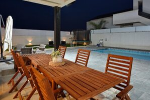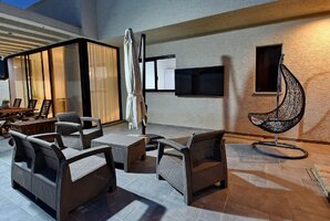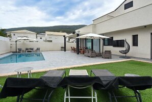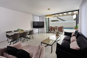הווילה מתהדרת בעיצוב פנימי וחיצוני מרהיב, עם ריהוט גן חיצוני ומיטות שיזוף שמזמינים להנאה מושלמת תחת השמש. המטבח מאובזר במכונת אספרסו, מדיח כלים, ומיניבר מים, לצד שולחן אוכל מרווח לארוחות משפחתיות.