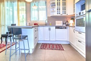 וילה מי אלמה כוללת מטבח מאובזר עם מקרר גדול, תנור אפייה, כיריים, מכונת אספרסו, מיקרוגל, כלי הגשה ובישול, פינת אוכל מרווחת ל-16 איש.