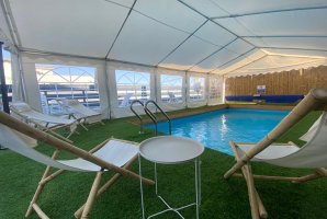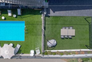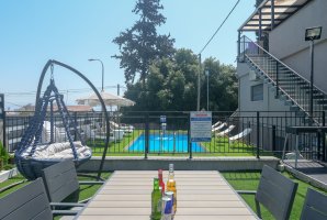 החלק הפנימי של הווילה מעוצב ומאובזר ברמה גבוהה אך הפינוק העיקרי הוא הבריכה הפרטית בחצר. האורחים של מיי וילה נהנים מבריכה פרטית, מגודרת, מחוממת ומקורה בהתאם לעונה. במתחם החיצוני גם ג'קוזי ספא מרובע. בחצר פינות ישיבה נוחות, ערסל, מיטות שיזוף עמדת מנגל. הילדים ישמחו לגלות שולחן פינג פונג.